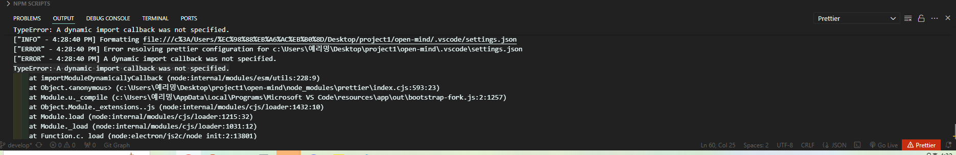 A dynamic import callback was not specified · Issue #3007 · prettier/prettier-vscode