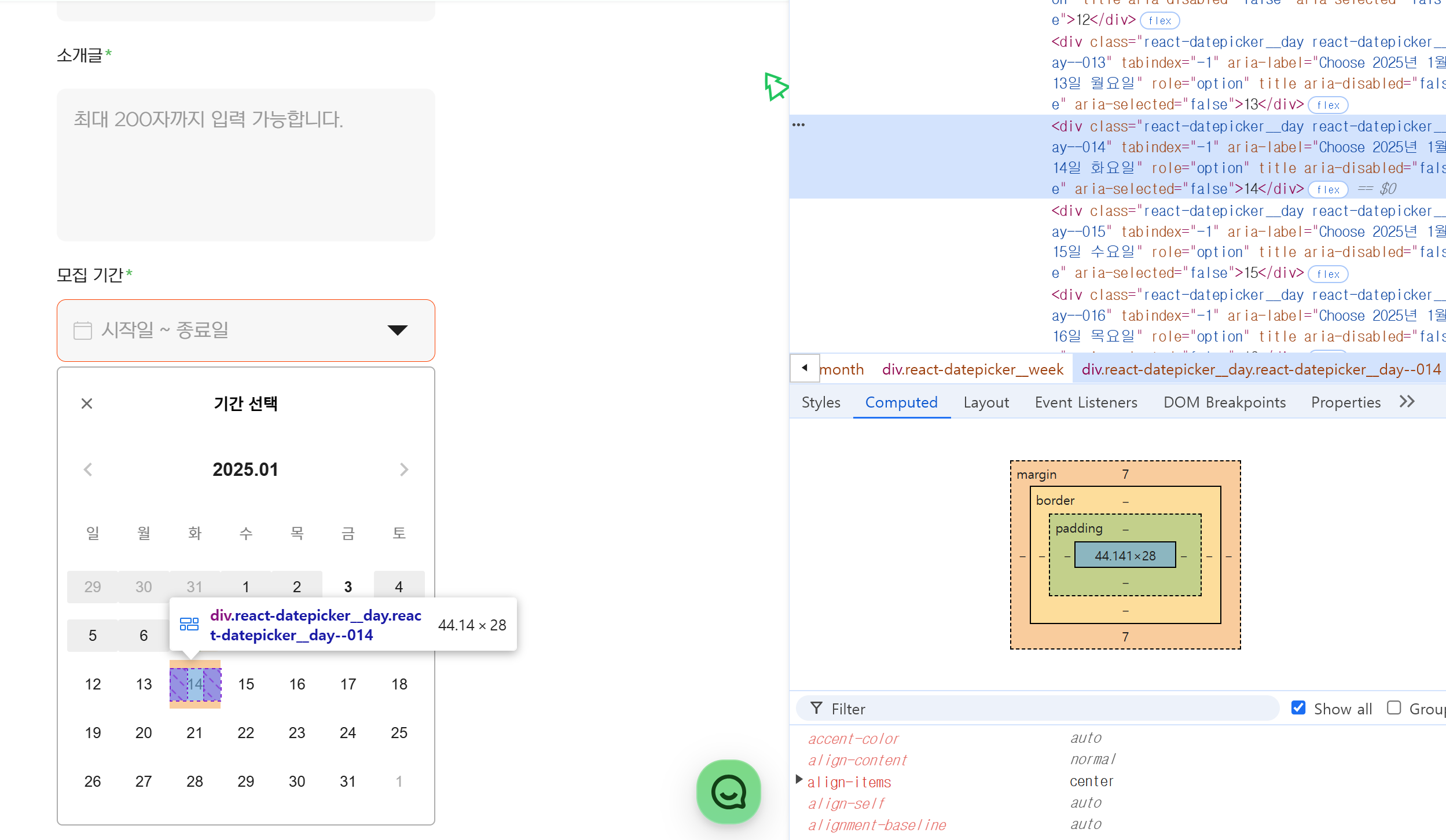 react-datepicker 라이브러리의 달력 UI 커스텀 과정 기록입니다.