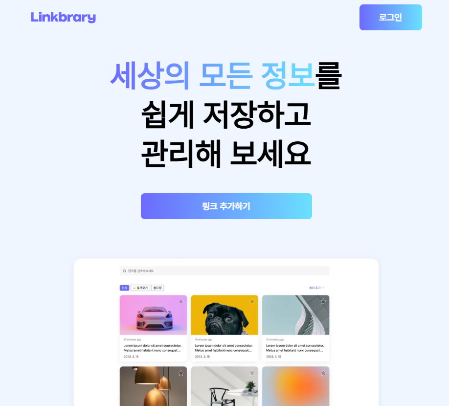 주요 기능인 링크를 추가하고, 조회하는 것에 집중하고자 페이지를 개편했다.