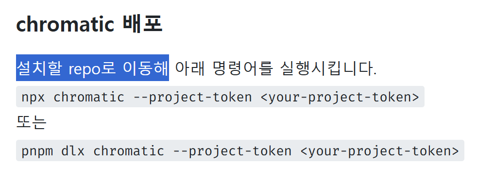 chromatic 에서 알려주는 명령어는 npx, yarn만 있길래 블로그 참조함!