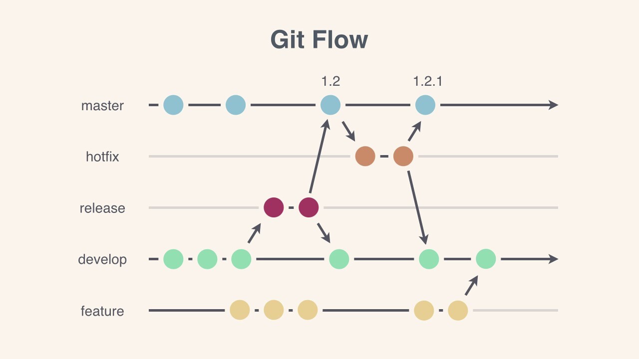 - release : 다음 버전 출시를 준비하는 브랜치. develop 브랜치를 release 브랜치로 옮긴 후 QA, 테스트를 진행하고 master 브랜치로 합친다. 배포를 위한 최종적인 버그 수정